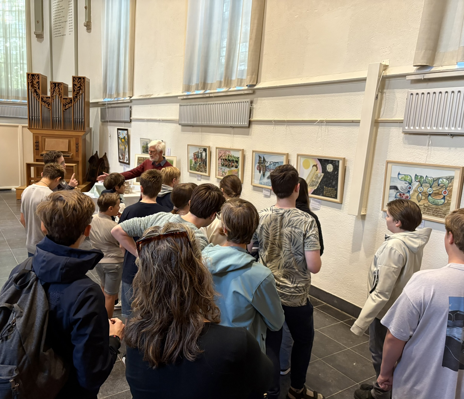 Afgelopen donderdag en vrijdag was er voor de PM-leerlingen en geïnteresseerde leerlingen een mooie rondleiding van ds. Maliepaard. In de kerk van Middelharnis stonden vele schilderijen van zijn hand. Al deze schilderijen hadden een Bijbelse boodschap.