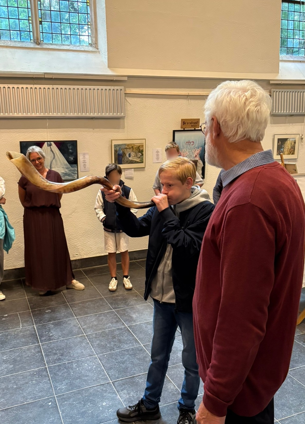 Tijdens deze rondleiding vertelde de dominee het verhaal achter de schilderijen. Ook legde hij uit hoe de Hebreeuwse taal gelezen wordt.